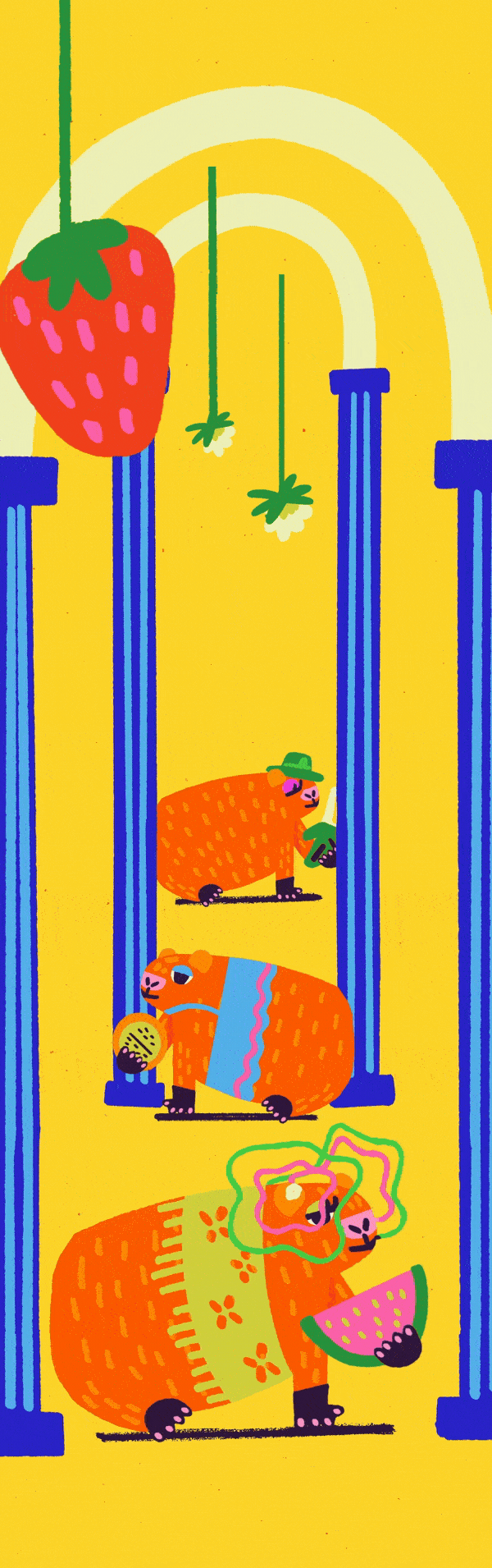 This piece is a dreamy invitation to draw some of my favorite things, tropical creatures, fluffy cakes, and all things sweet and slightly strange. It’s a gentle celebration of silliness, comfort, and indulgence.